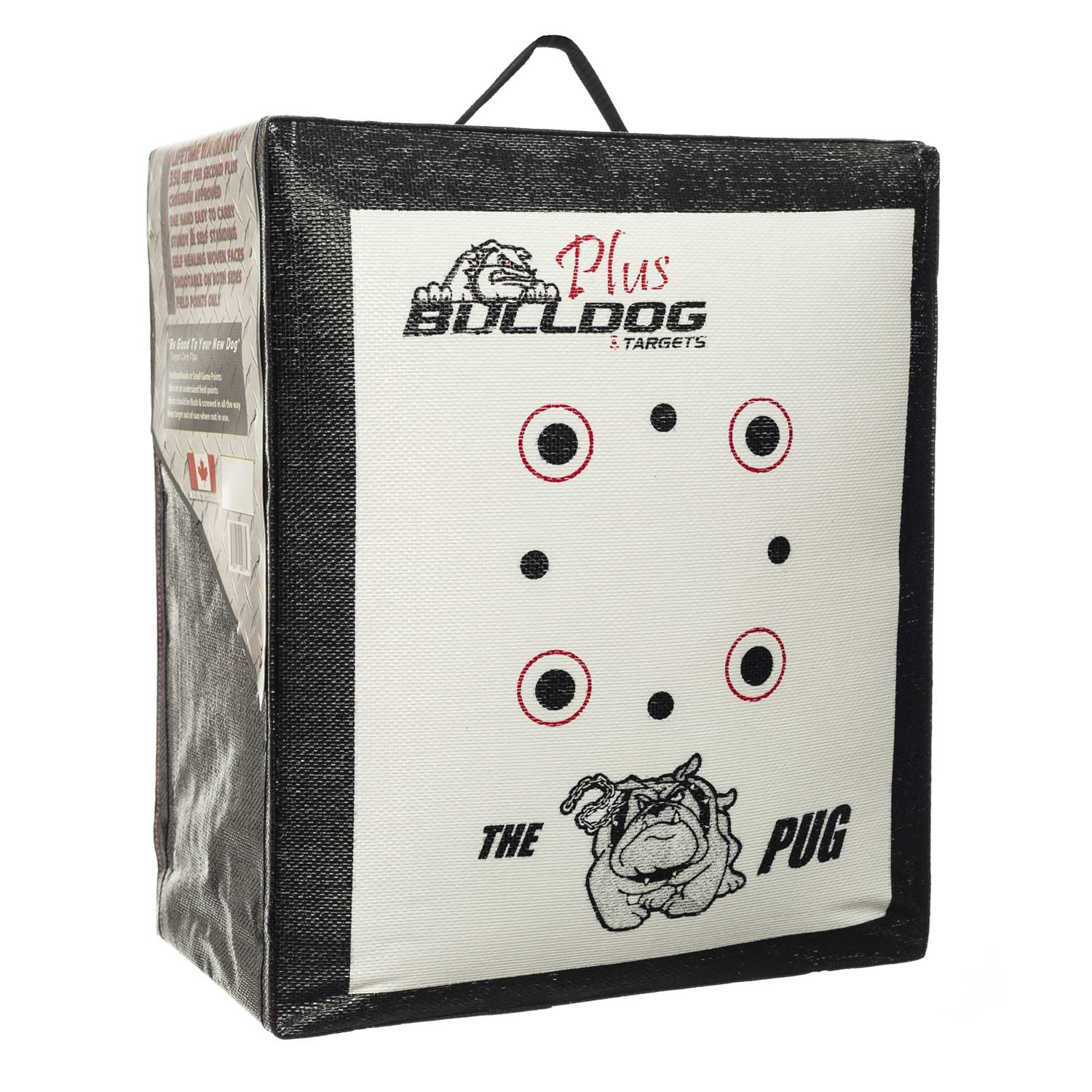 The PUG™.This archery target may be small but it's tough! Named after the Pug because of it strength relative to its size. The PUG Target will stop any bow, or crossbow out there, but is smaller than the other targets and will not take up valuable space when packing for your hunting trip.