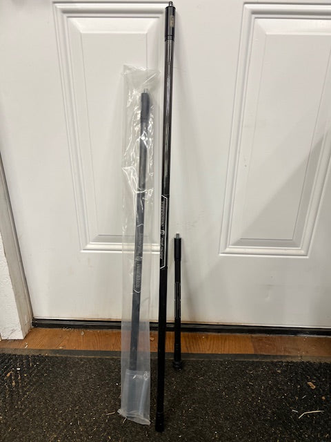 One 33 inch carbon stabilizer slightly used One 27 inch never used and one back bar12 inch slightly used. A couple of weights are on the back bar. All have 5/16 X 24 standard threads. This is for all three.