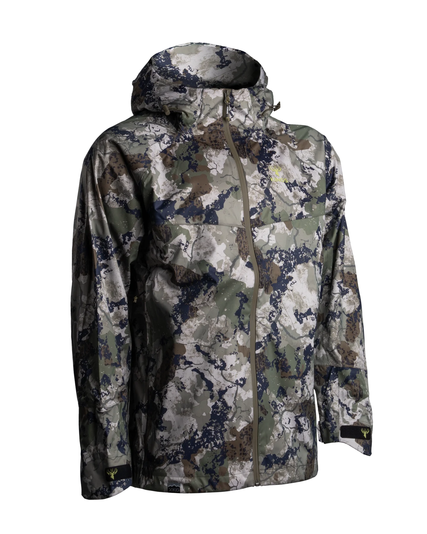 100% Polyester 4 way stretch fabric, and brushed water repellant outer fabric and fully taped seams, it will keep the elements out while keeping you dry inside